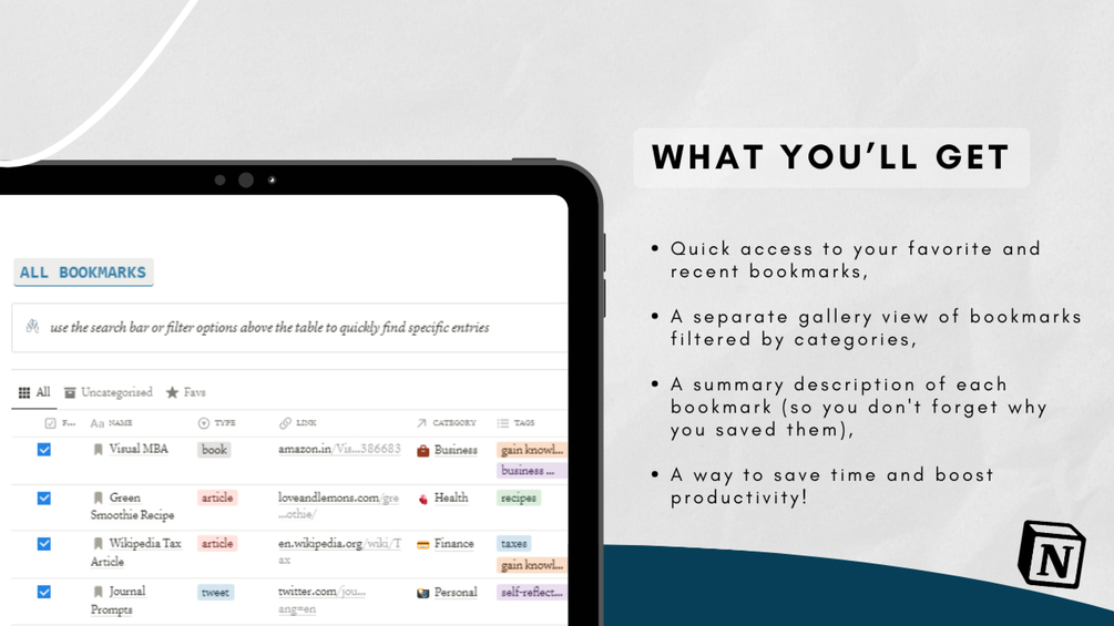 ✨A summary description of each bookmark (so you don't forget why you saved them),